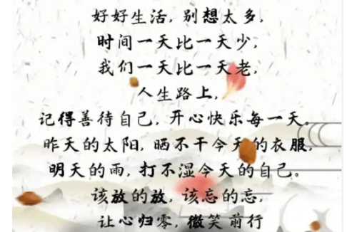 人活着的时候,千万不要不顾自己,整天放不下这个放不下那个,为了这个为了那个,...